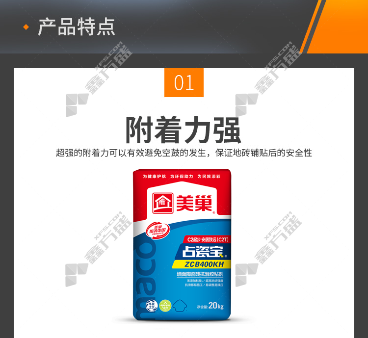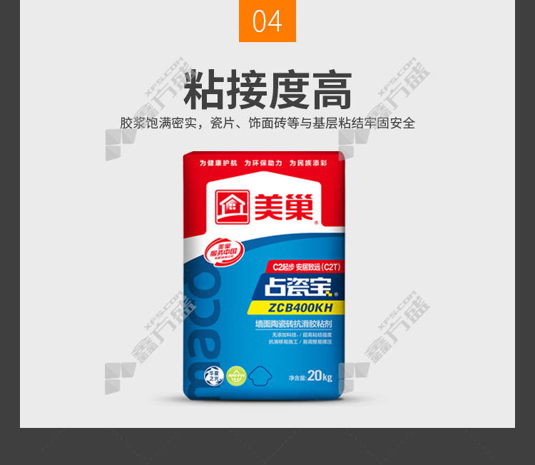 首页 首页 > 美巢 占瓷宝ZCB400KH 陶瓷砖 墙面抗滑胶粘剂 20kg