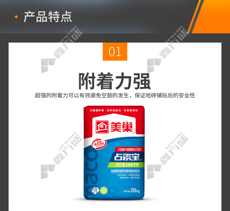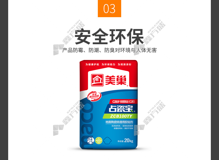 商品名称: 美巢 占瓷宝ZCB100TY 陶瓷砖 地面通用胶粘剂 20kg