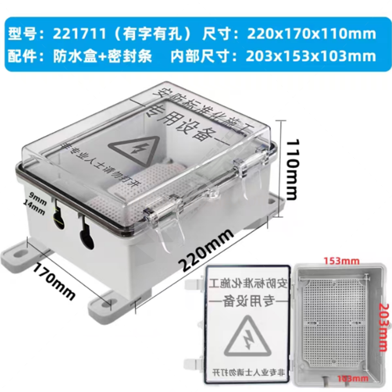 • 迎欣 防水盒接线盒 221711(有字有孔)/透明
