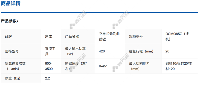 商品名称: 东成 DCMQ85Z 充电式曲线锯 20V 420W