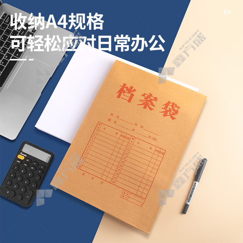 商品名称: 馨典 混浆牛皮纸 档案袋 238*338*40mm 米黄色 250g