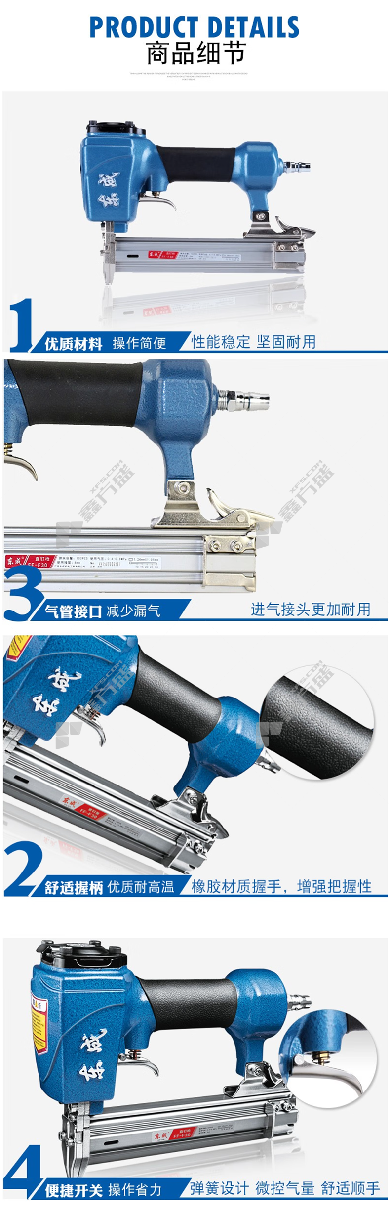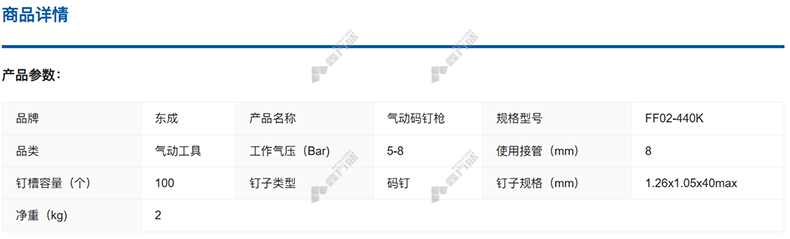 商品名称: 东成 FF02-440K 气动码钉枪 5-8Bar 1.26*1.05*40max 100个
