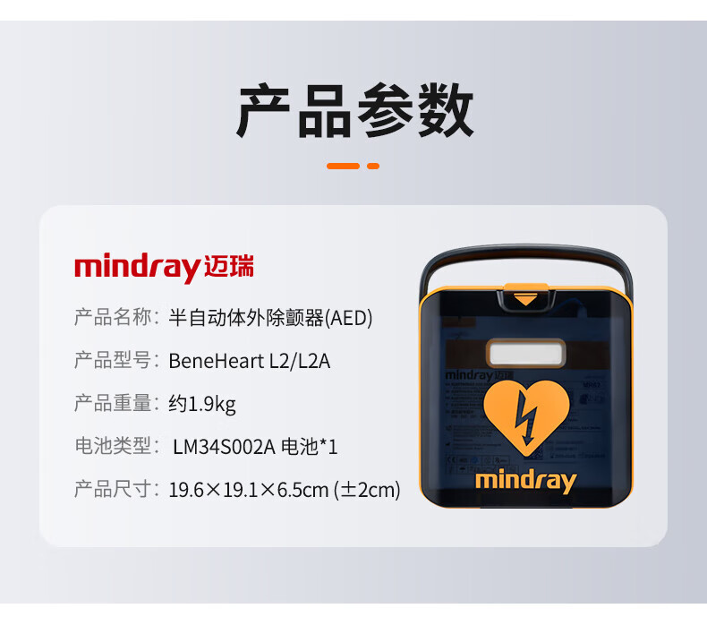 商品名称: 迈瑞 彩屏款半自动体外除颤器 BeneHeart L2/L2A 0~360J 峰值1kW -5~50℃