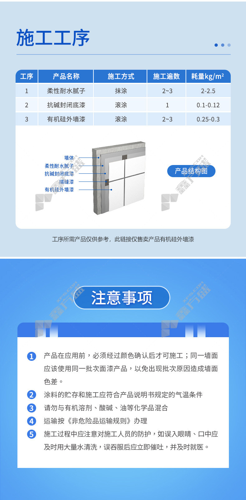 质感外墙涂料涂布量:8-10㎡/kg