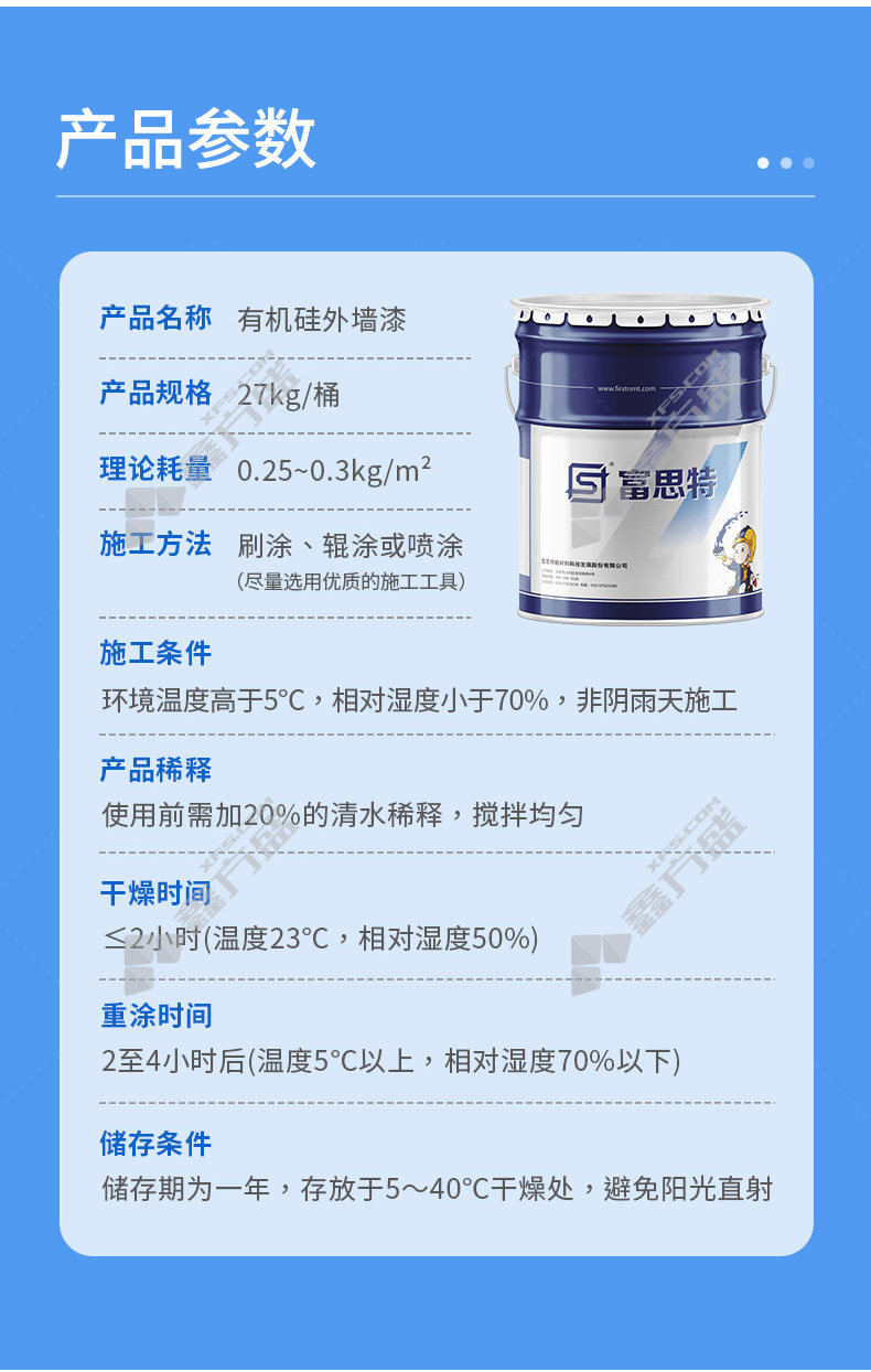 商品名称: 富思特 E600 有机硅外墙漆 27kg 白色