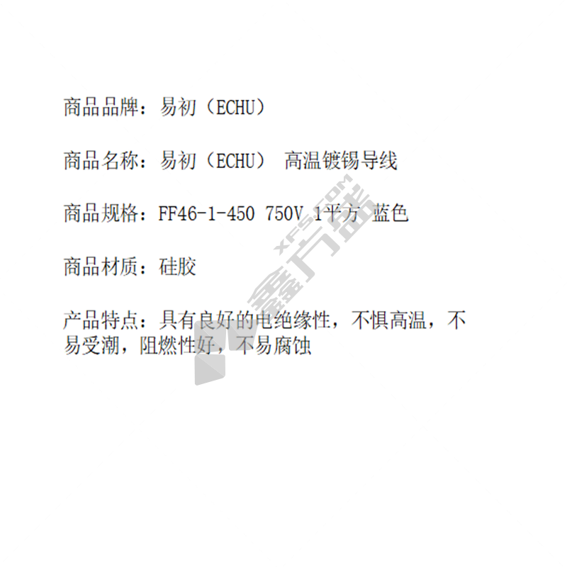 商品名称: 易初ECHU 高温镀锡导线 FF46-1-450/750V-1平方-蓝色