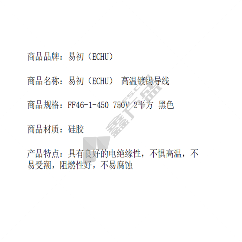 商品名称: 易初ECHU 高温镀锡导线 FF46-1-450/750V-2平方-黑色