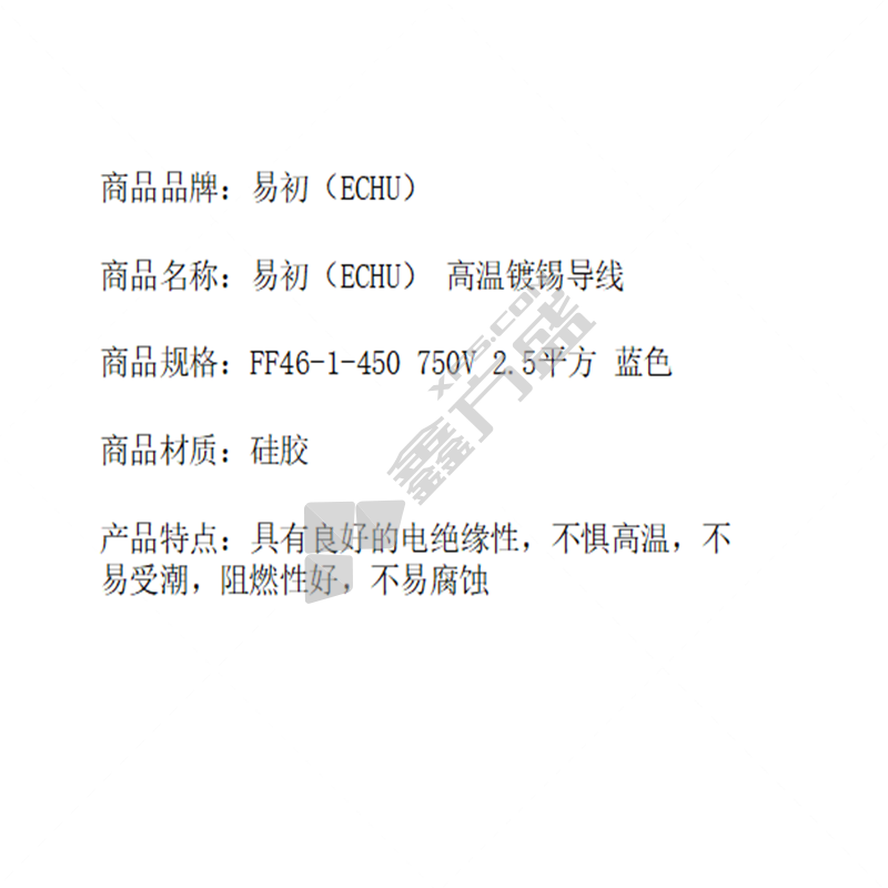 商品名称: 易初ECHU 高温镀锡导线 FF46-1-450/750V-2.5平方-蓝色