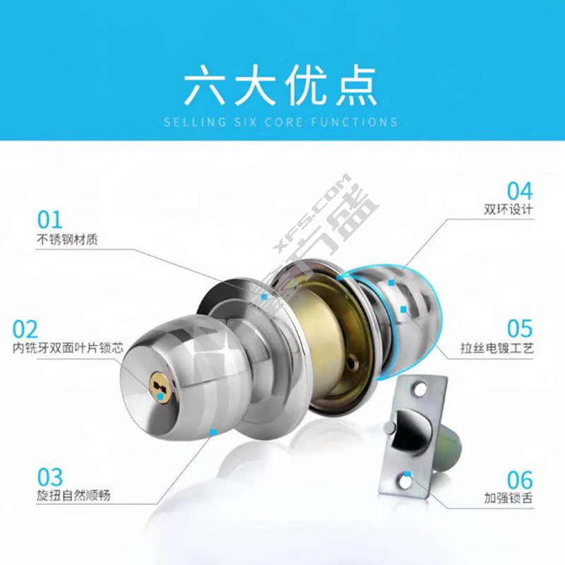 商品名称: ASACK 球形门锁 5cm锁舌+6cm锁舌