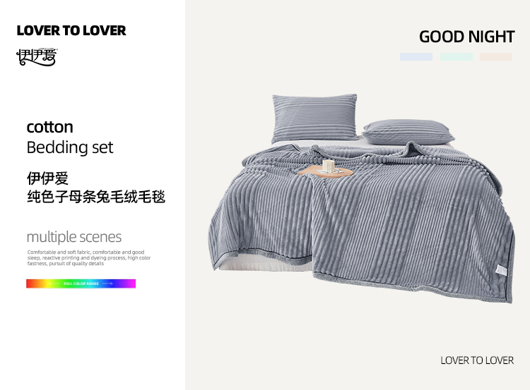 首页 首页 > 伊伊爱 YTK25511 纯色子母条兔毛绒毛毯 200*230cm 浅灰色