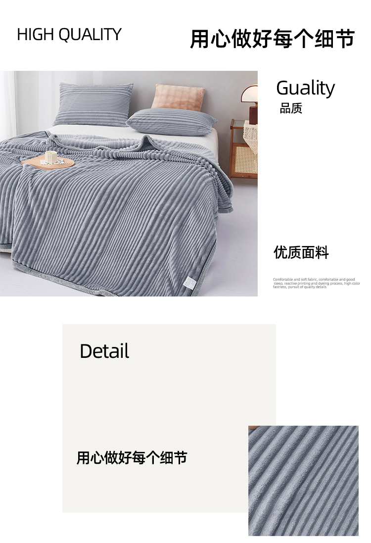 商品名称: 伊伊爱 YTK25511 纯色子母条兔毛绒毛毯 200*230cm 浅灰色