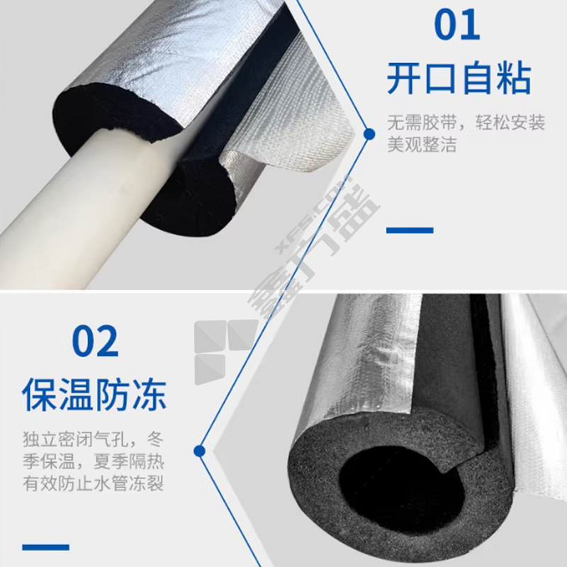 • 金品 B1级 普通 自粘开口铝箔保温管套 20*20mm*1m