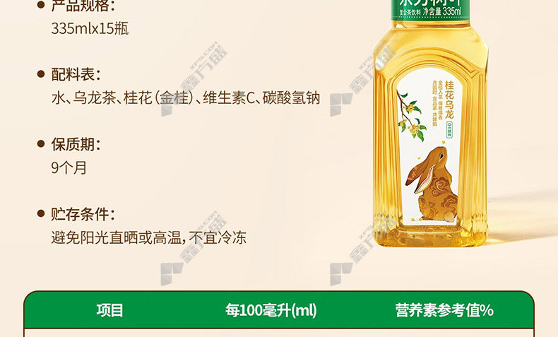 商品规格:335ml/桂花乌龙味/15瓶/箱