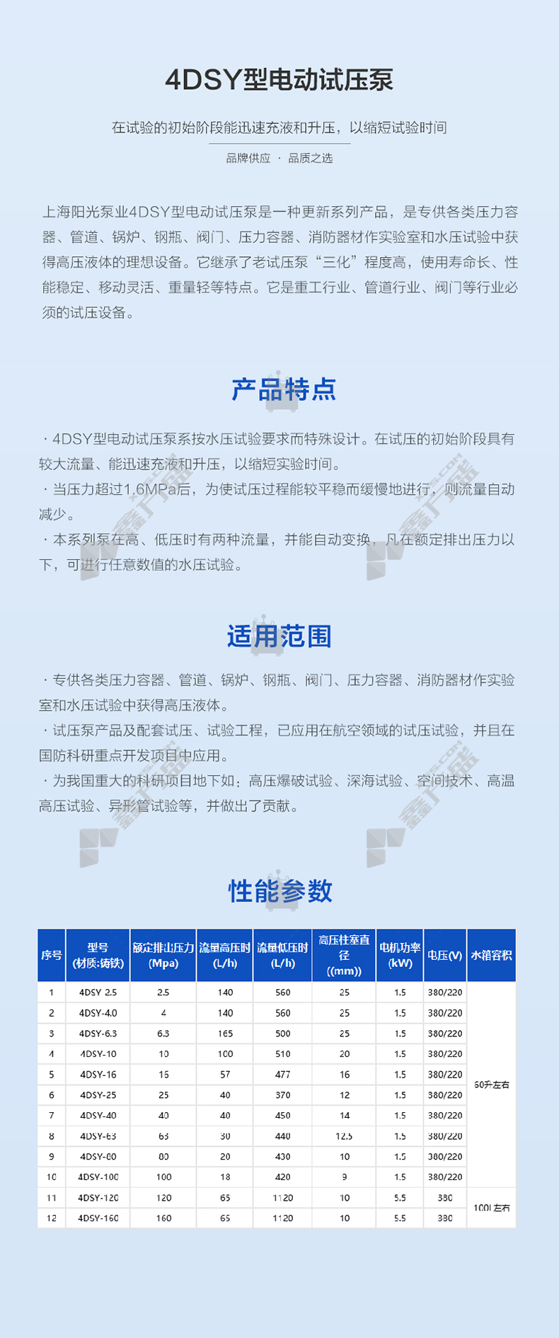 商品规格:4DSY-80/80MPa/380V/1.5kW/430L/h
