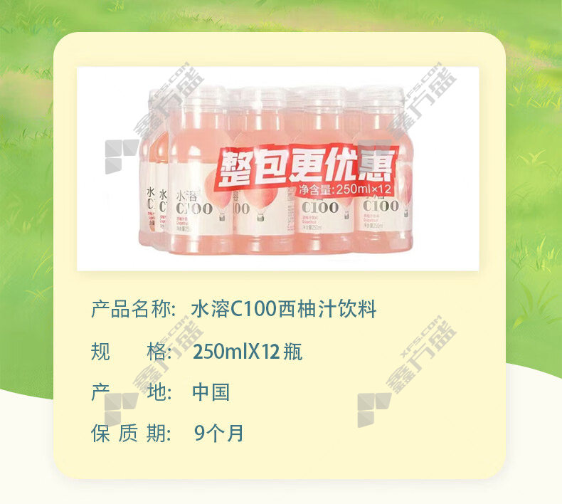 商品名称: 农夫山泉 水溶C100西柚饮料 250ml 西柚味 12瓶/箱