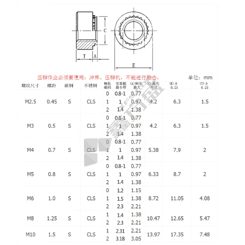 商品名称: 固万基 304不锈钢 压铆螺母 M3/2mm/CLS