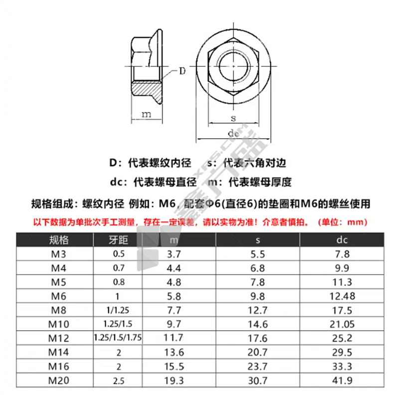 商品名称: Creaby DIN6923 304不锈钢 带垫无胶圈齿面六角法兰螺母 M4