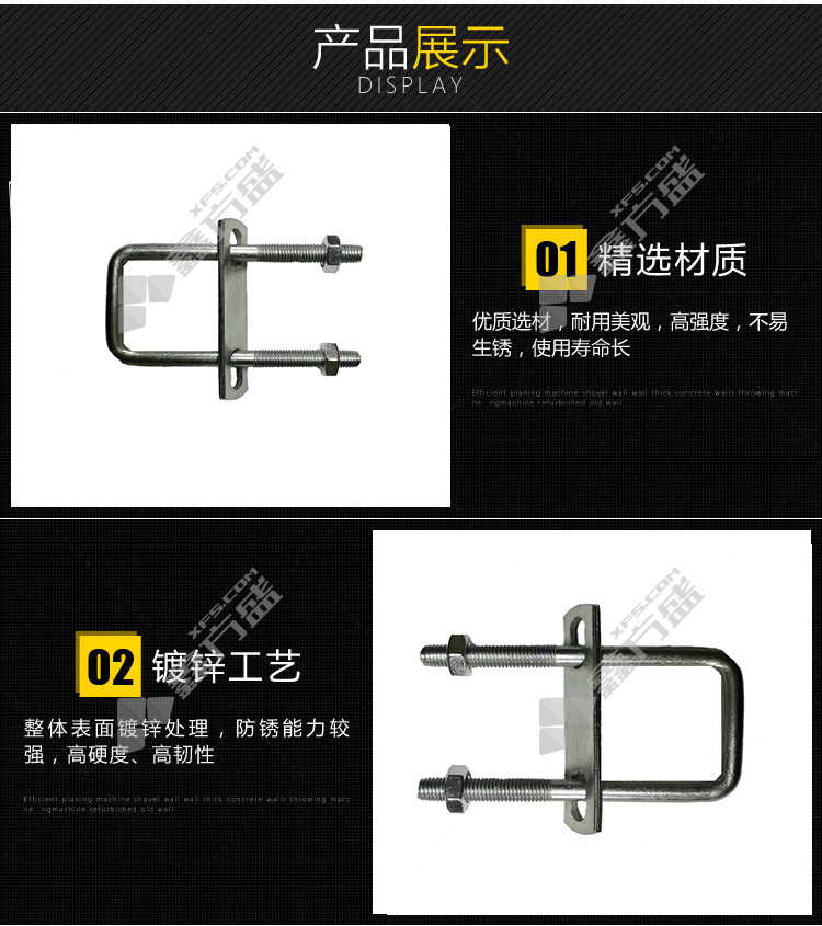 • 镀锌 4.8级 方U型丝含螺母挡板 M10 180mm 43mm