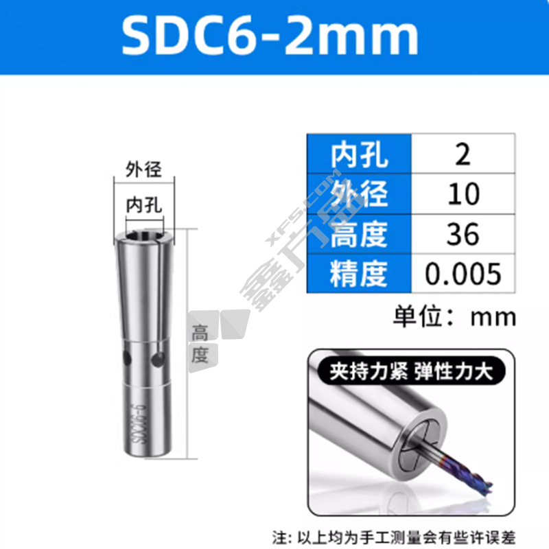 商品名称: 霍卡 65锰钢 高精度后拉筒夹 SDC6-2mm