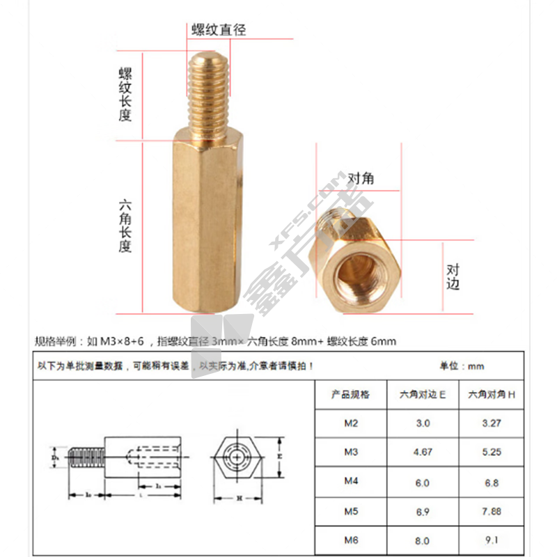 商品名称: 固万基 铜 单通六角螺柱 M2/8mm+5mm