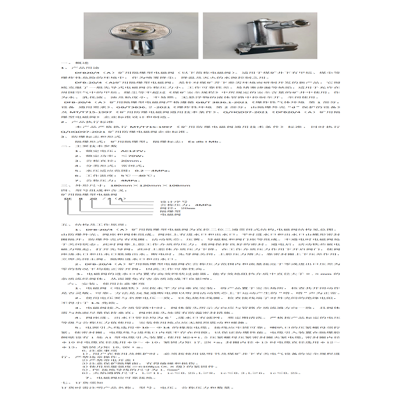商品名称: 淮南启迪 矿用隔爆型电磁阀 DFB20/4(A)