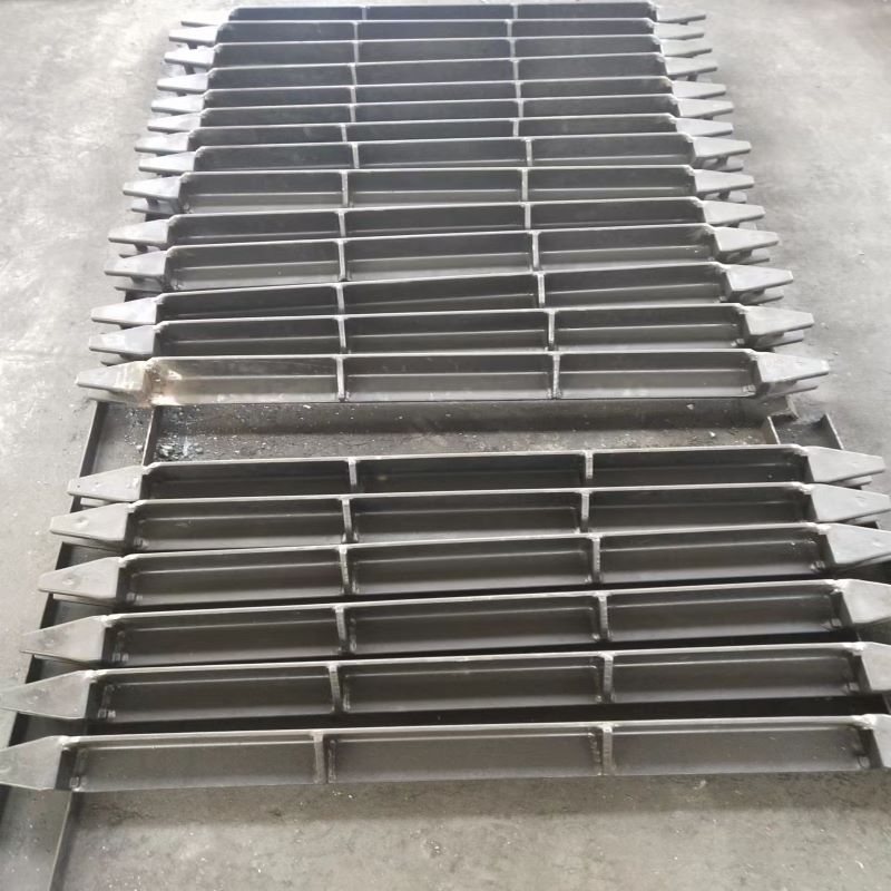 用于锅炉除渣干式除渣机清扫系统;刮板本体采用优质高碳钢并加强筋防止变形;刮板铰叉采用ZG45模具成对精铸,保证精度;耐磨板采用10mm厚耐磨16Mn钢热处理