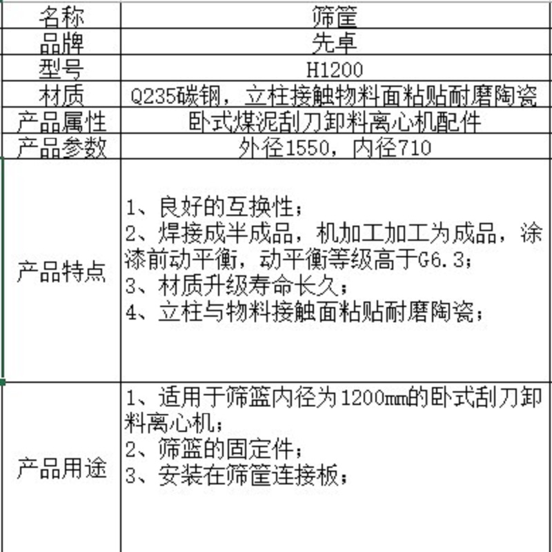 • 先卓 筛筐 CH1200-02-02