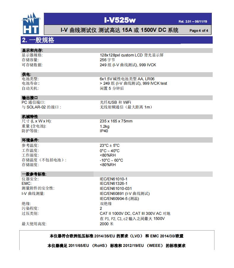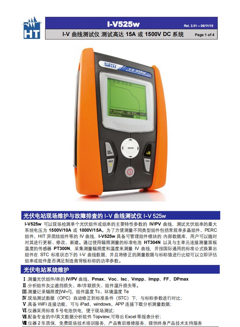 首页 首页 > 意大利HT I-V525W 太阳能电池组件便携式IV测试仪 台