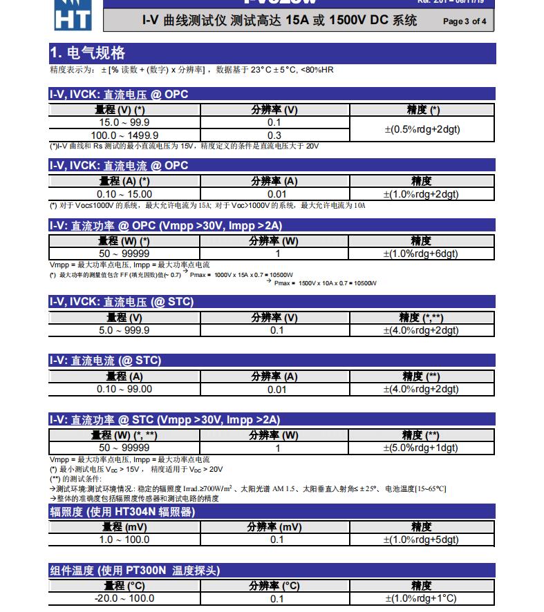 • 意大利HT I-V525W 太阳能电池组件便携式IV测试仪 台