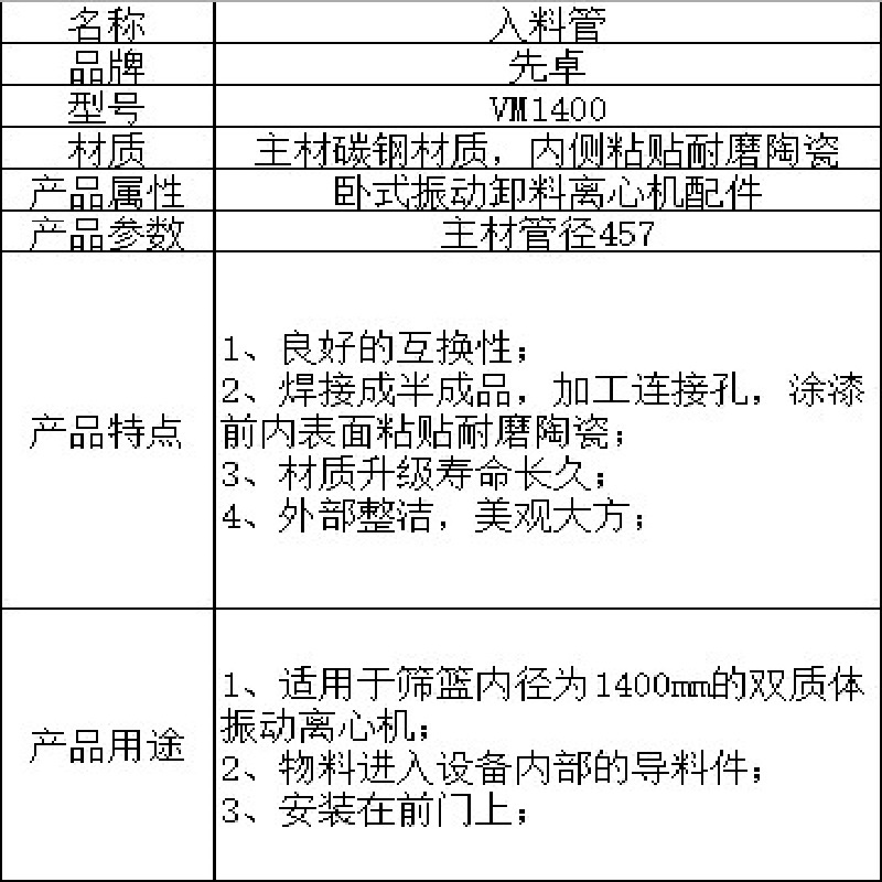 商品名称: 先卓科技 进料管 CVM1400-9-0 白色