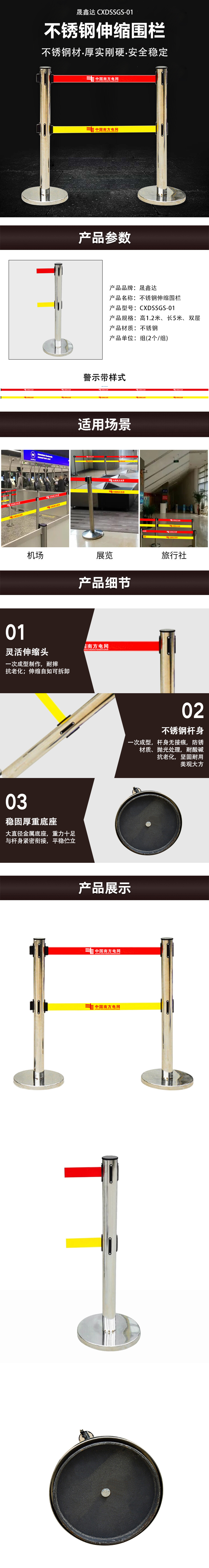 晟鑫达 CXDSSGS-01 高1.2米 长5米 双层 伸缩围栏 不锈钢色 (计价单位:个) CXDSSGS-01 不锈钢色