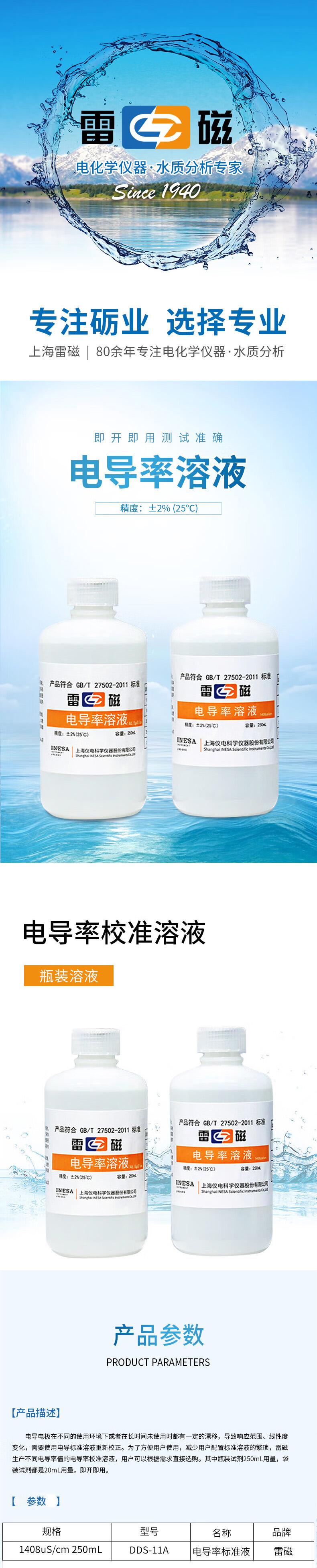商品名称: 雷磁 DDS-11A 1408uS/cm 250mL 电导率标准液 (计价单位:瓶) DDS-11A