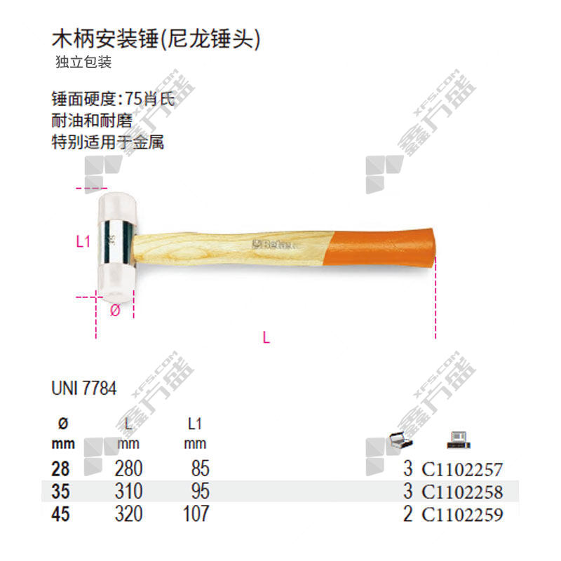 商品名称: 百塔Beta 安装锤 35 木柄 独立包装 C1102258