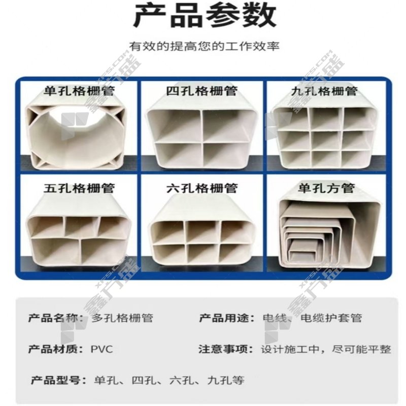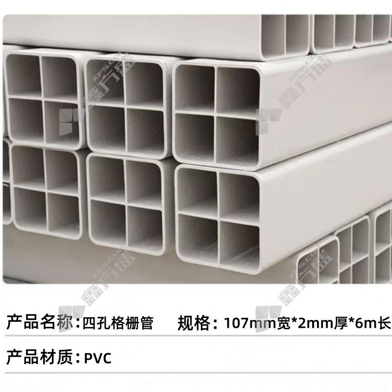 商品名称: 腾达汇泰 四孔格栅管 107mm×107mm×6m 壁厚2.0mm 含接头,材质PVC 白