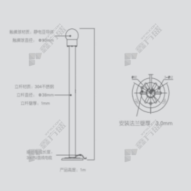 VbobTdata 静电释放柱.. 高30mm钢管直径38mm球体直径90mm.