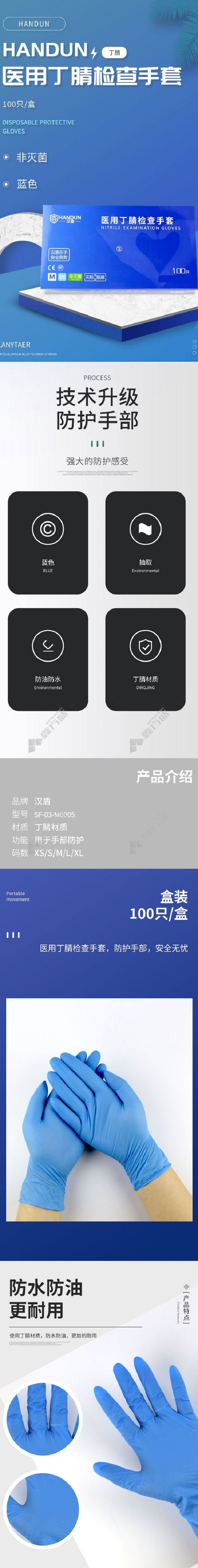 商品名称: 汉盾 医用丁腈检查手套 SF-03-M6005 100只/盒(4.0G)