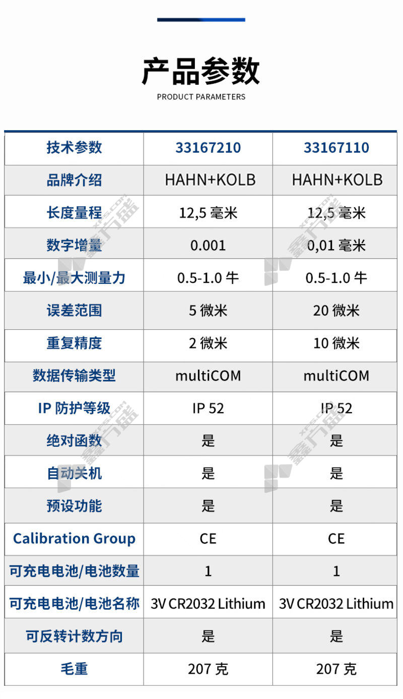 商品名称: 哈恩库博 千分表 33167110 量程12.5毫米,分度值0.01毫米,具有multiCOM数据输出功能