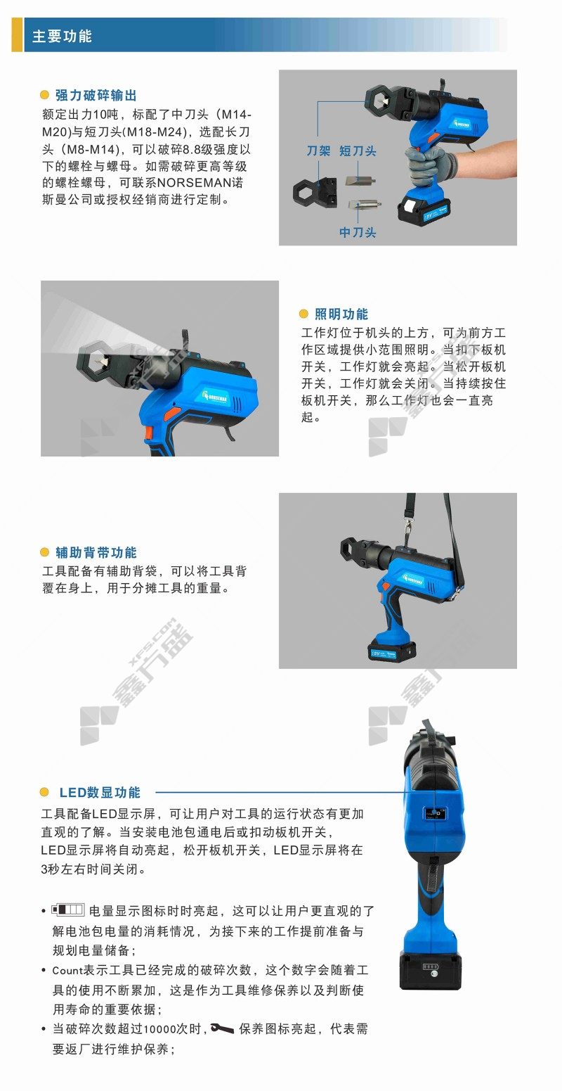 商品名称: 诺斯曼 液压切削工具 565608 锂电液压螺母破切器14-36mm(两电一充) 蓝色