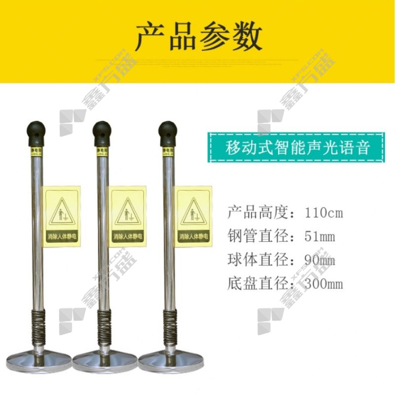 越翔安防 EX-JDS-YXA 人体静电释放器 立柱直径51mm 底座直径210mm 整体高度1.1m 黄黑 防爆声光报警款