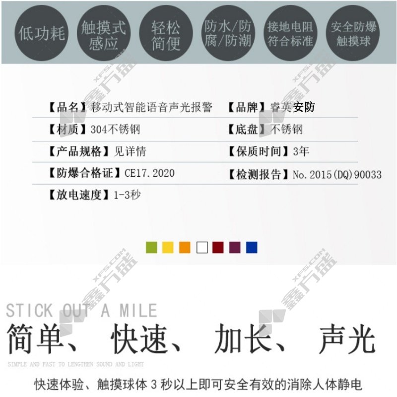 商品名称: 睿英安防 移动式防爆型人体静电释放器本安型 Ex-JDS-RYA