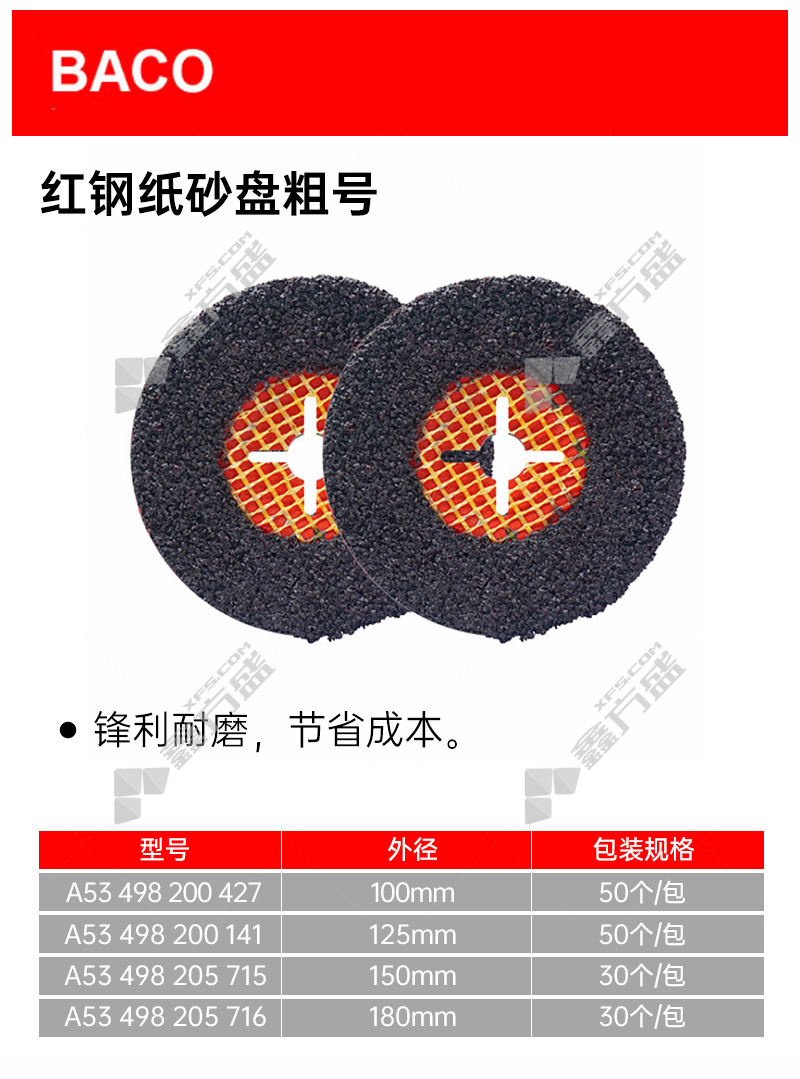 商品名称: 巴可 红钢纸砂盘 180mm A53 498 205 716 30个/包